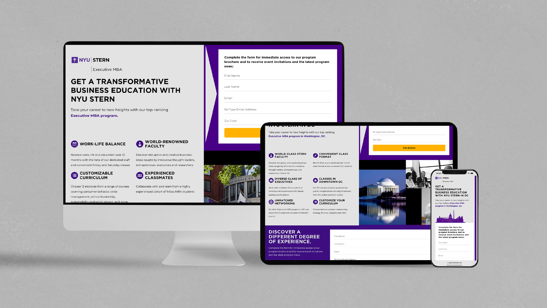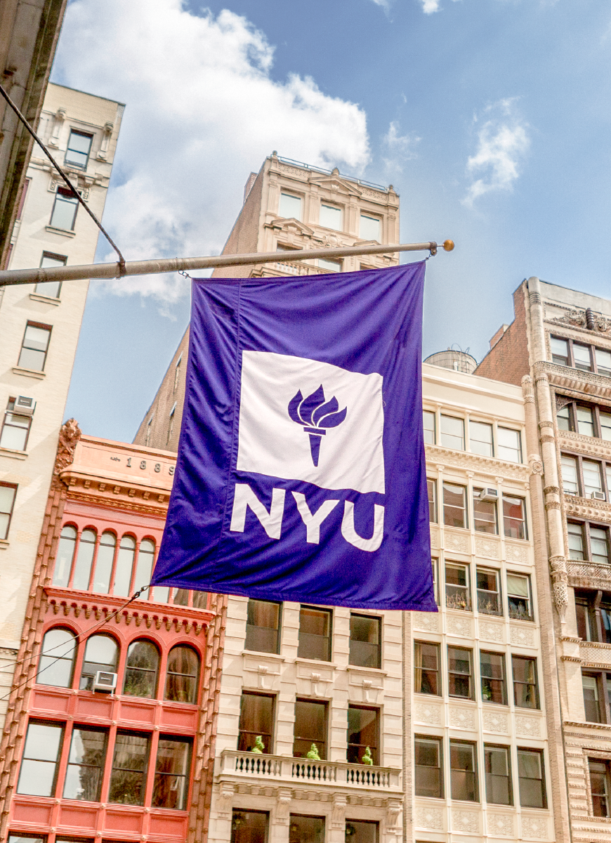 NYU Stern graphic that features the Open to Excellence campaign on a phone mock-up